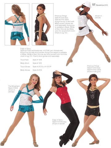 Edge of Glory Style # 5706S (w/rhinestones) # 5706P (w/o rhinestones) Kung Pow top with tricot accent. Kung Pow sequin is available in Black, White & Red. Choose any tricot accent color from the chart on pg 100. Pant & tricot gloves sold separately. Tricot Pant