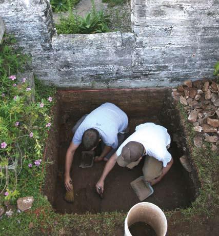 smith, rendered Spanish coins, French Faience ceramics, German Westervald stoneware and American slipwares. The Rectory, a house once owned by active Bermudian merchant John Dickinson, revealed little to no archaeological findings, as the grounds had not been wellpreserved. The Dickinson Storehouse ruins, however, provided a vast amount of archeological evidence.