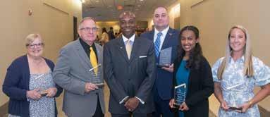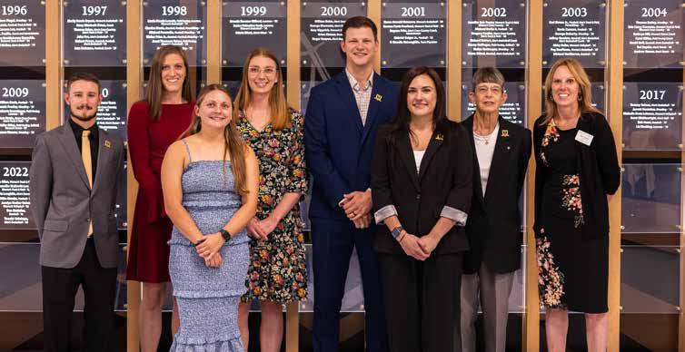 (L to R) front row: Kay Liebl and Sabrina Fusco; back row, Connor Sheehan, Amanda Myers Strack, Dr. Erin Madison, Brandon Miller, Donna Eshleman and Director of Athletics Kate Corcoran