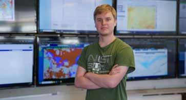 “The biggest draw for me was the excellent meteorology program’s reputation and good professors,” he says. “It is a small enough department that you can connect oneon-one with professors, but still large enough to enjoy the benefits of a good program. I also found the size of the school and campus overall appealing.” He says he has come to appreciate having helpful advisors, top-notch meteorologists and really good professors with whom he can interact and consult.