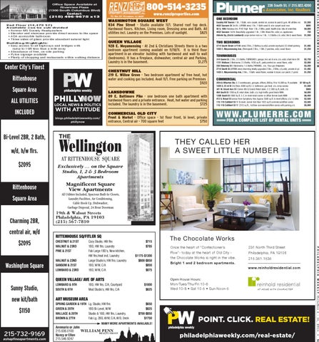 Pine & 21st 1Bd's, hardwood, heat incl., yard $770-995 Walnut & 23rd 1 & 2Bd's, hardwood, laundry Pine & 22nd 1 & 2Bd, hardwood, heat incl. $575-1000 Locust & 21st Studios & 1Bd's, laundry, heat incl.Lombard & 23rd 1 &2Bd, bi-level, A/C Pine & 21st 1Bd's, hardwood, heat incl., yard Chestnut$850-950 & 20th Ultra mod 1Bd's, C/A, great location $700-1000 Pine & 22nd 1 & 2Bd, hardwood, heat incl. Lombard & 19th Newly renov, mod studio, 1 & 2Bd's $750-1100 Lombard & 23rd 1 &2Bd, bi-level, A/C Broad & Spruce Mod 1Bd's, W/D, C/A, heat incl. $875-1000 Chestnut & 20th Ultra mod 1Bd's, C/A, great location Lombard & 9th 1Bd & 2Bd, w/d, hardwood, laundry Lombard & 19th Newly renov, mod studio, 1 & 2Bd's Pine & $875-1700 9th 2Bd's, h/w floors, W/D $800-850 Broad & Spruce Mod 1Bd's, W/D, C/A, heat incl. Spruce & 12th 2Bd, 1-1/2 bath, bi-level, laundry $850-995 Lombard & 9th 1Bd & 2Bd, w/d, hardwood, laundry Spruce & 16th Old World, 1 & 2Bd's, hardwood $995-1100 Pine & 9th 2Bd's, h/w floors, W/D Art Area Ultra Mod 1 & 3Bd's, W/D, Deck, Parking Spruce & 12th 2Bd, 1-1/2 bath, bi-level, laundry Old City Fab$995 ultra mod 1 & 2Bd's, deck $995-1350 Spruce & 16th Old World, 1 & 2Bd's, hardwood University City 3Bd, 2 bath, totally renovated Art Area Ultra Mod 1 & 3Bd's, W/D, Deck, ParkingSpring $950-1750 Garden Collonade-Extremely Nice Studio $825-1375 Old City Fab ultra mod 1 & 2Bd's, deck Q.V. 3rd & Bambridge 1 & 2Bd's, W/W, C/A $1950 University City 3Bd, 2 bath, totally renovated Spring Garden & 19th Studio, hardwood, Heat incl. Spring Garden Collonade-Extremely Nice Studio Fairmount &$700 18th Mod 1Bd, C/A, W/D $600-675 Q.V. 3rd & Bambridge 1 & 2Bd's, W/W, C/A Mt. Vernon & 21st Gret Studio, Yard, Laundry $375 1Bd, parquet floors, yard Spring Garden & 19th Studio, hardwood, Heat incl. Wallace & 20th $625 Fairmount & 18th Mod 1Bd, C/A, W/D Aspen & 26th 1Bd, W/W, laundry $600 Mt. Vernon & 21st Gret Studio, Yard, Laundry $700 Wallace & 20th 1Bd, parquet floors, yard $600 Aspen & 26th 1Bd, W/W, laundry