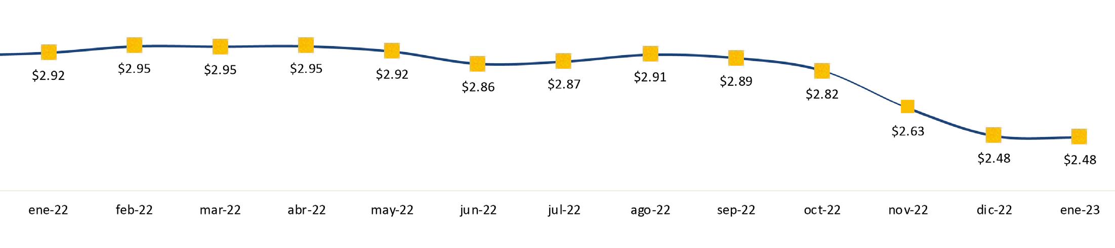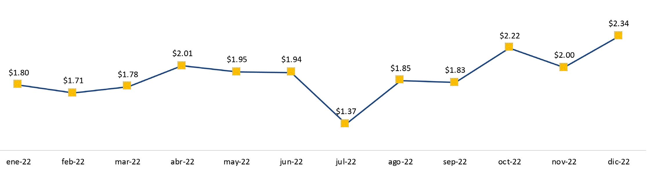 Precios promedio de importación de los principales países proveedores (2021 vs 2022) Feb Mar Abr May Jun Jul Ago Sep Oct Nov Dic