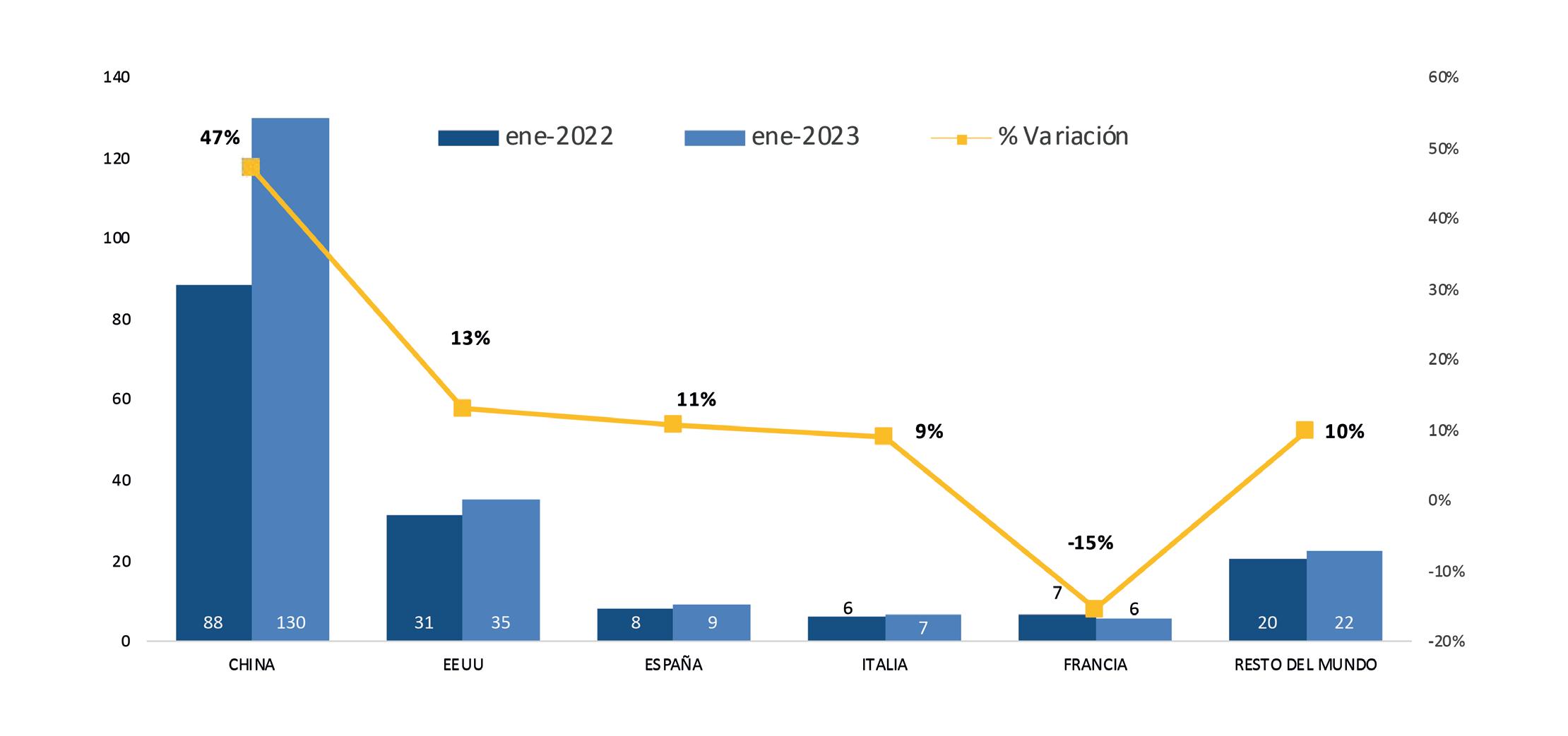 Comparación de volúmenes de importación de los principales países proveedores (2021 vs 2022)