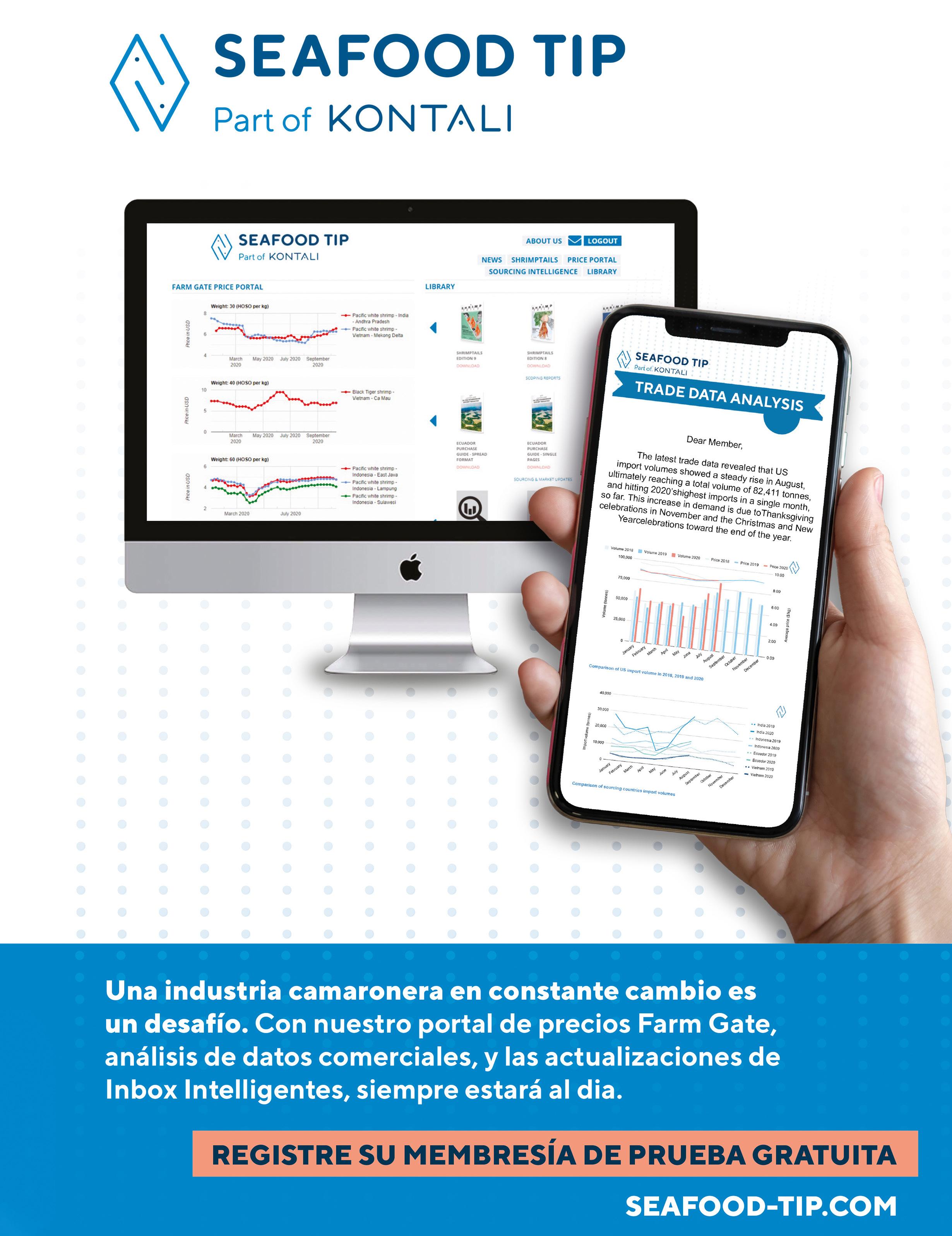 medidas de confinamiento, lo que asfixió el consumo derribando la demanda en el momento clave del año para venta de camarón a ese mercado. Una vez más, los precios cayeron a niveles inferiores, inclusive, a los de los meses más duros de la pandemia.