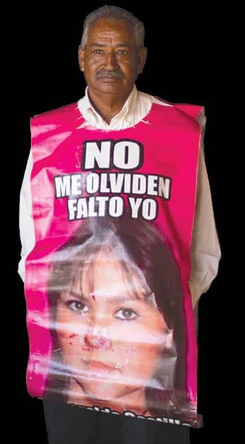 Vestido con una pancarta rosa, donde se observa la foto y nombre de su hija: Esmeralda Castillo, junto a la frase “No me olviden, falto yo”. Este activista es sólo uno de los miles de ejemplos de familiares desesperados y víctimas colaterales de la desaparición forzada.