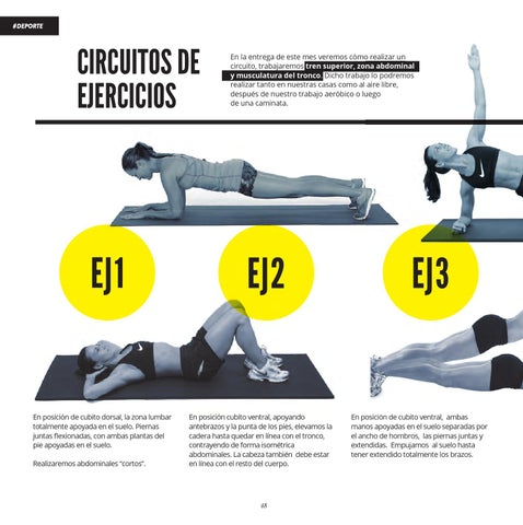 En la entrega de este mes veremos cómo o realizar un circuito, trabajaremos tren superior, zona na abdominal y musculatura del tronco. Dicho trabajo o lo podremos realizar tanto en nuestras casas como al aire libre, después de nuestro trabajo aeróbico o luego uego de una caminata.