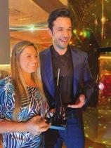 A arquiteta Jocymara Nicolau com o artista Sergio Marone durante a pre miação Top 100 KAZA que comemo rou 15 anos em uma celebração no Tivoli Resort, na Praia do Forte (BA). O escritório da curitibana foi o único do Brasil a ser premiado em todas as edi ções do Top 100 KAZA.
