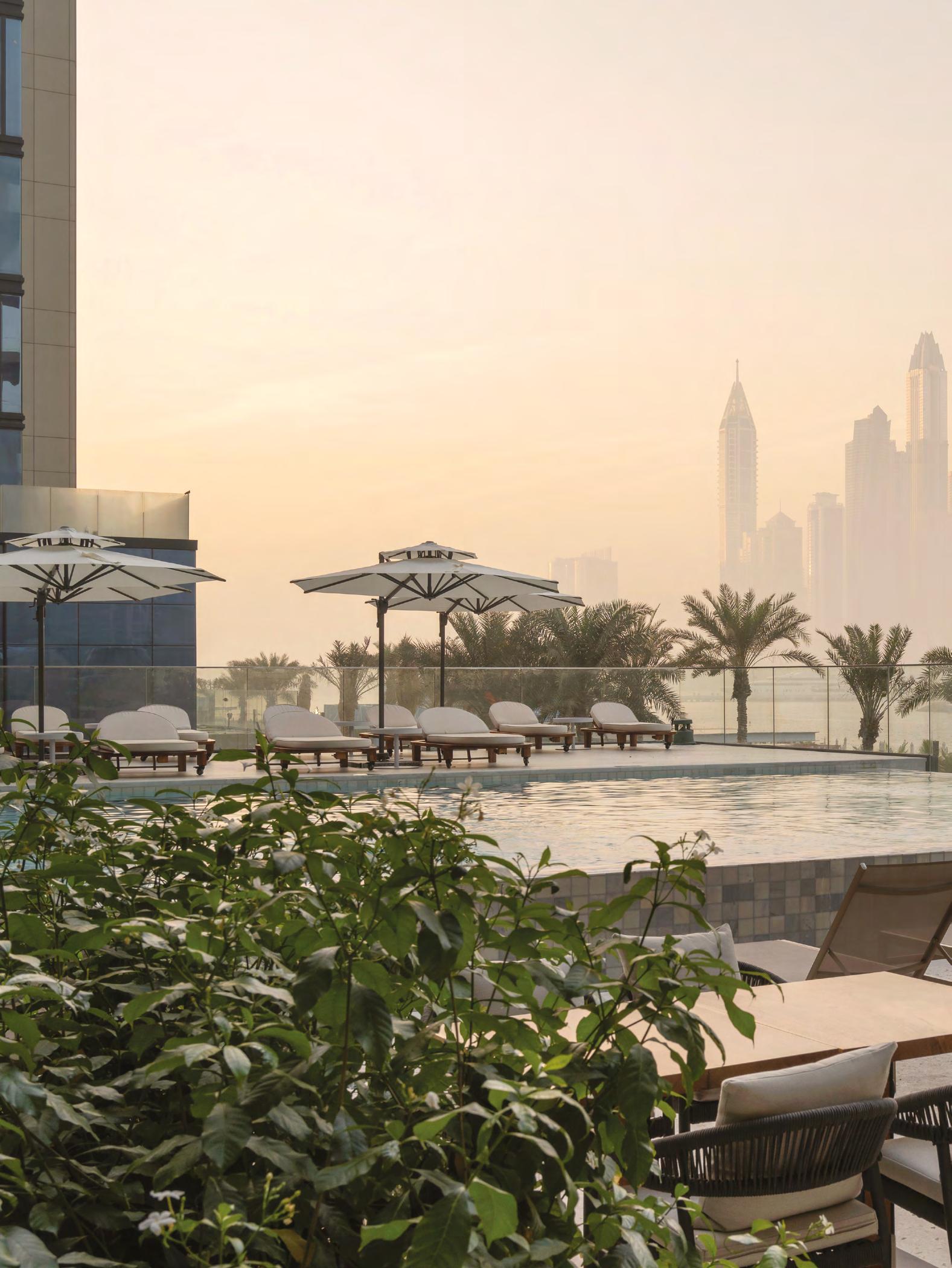 Cores neutras e o mix de diferentes materiais e texturas evidenciam simplicidade e sofisticação. Com varandas envidraçadas, as suítes projetam as vistas do centro de Dubai