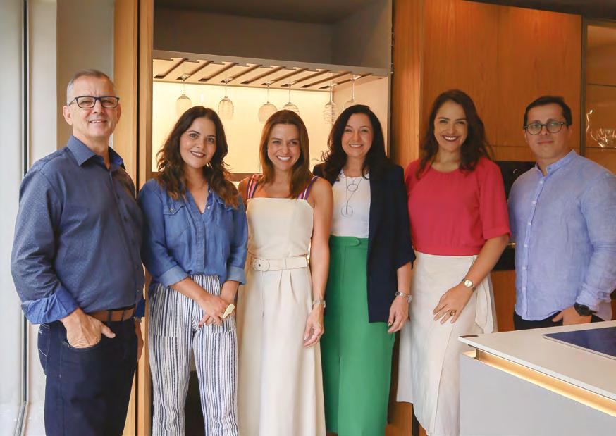 A Momenttum lançou 3 novas vitrines assinadas por Hōra Arquitetura, Sosna Design e Rodolfo Fontana, destacando o mobiliário nacional. A loja, que está comemorando 25 anos, também recebeu Vivian e Erika Coser, do Studio Sette7, para uma conversa sobre processos produtivos e a participação na Semana de Design de Milão. Na foto, Rodolfo Fontana, Erika Coser, Vivian Coser, Ana Salgado, Marinice Bettega, Juliana Macedo e Renan Freitas. Foto: Kelly Knevels