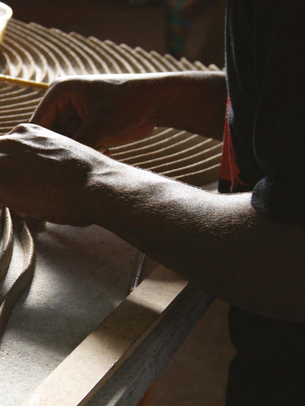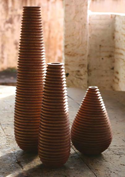 Os tons de ocres, vermelhos, marrons e, mais recentemente, cinzas das colinas e pedras que fascinam o designer, assumem novas formas e significados. As imperfeições, sem artifícios, alinham-se à filosofia japonesa wabi-sabi, da qual ele é discípulo. “O imperfeito é puro de origem e fala por si só. As texturas surgem dos erros que aproveitei. No meu processo, estabeleço um diálogo com o material. No começo, só eu falo; depois, ele se torna tão eloquente que me conduz”, conta, ao me receber em sua casa e estúdio. A acolhida calorosa se mistura aos encantos do lugar onde o tempo parece flutuar.