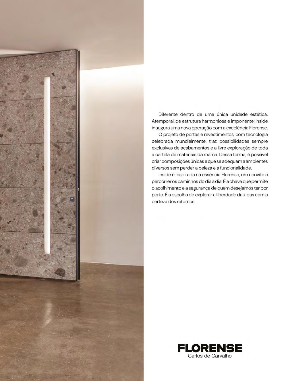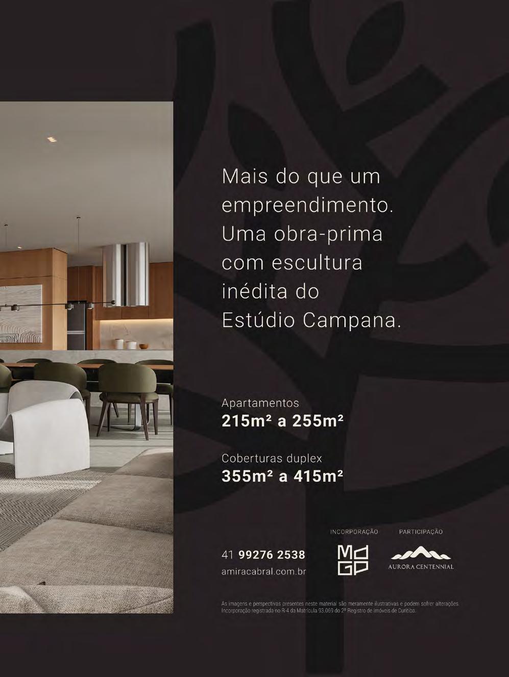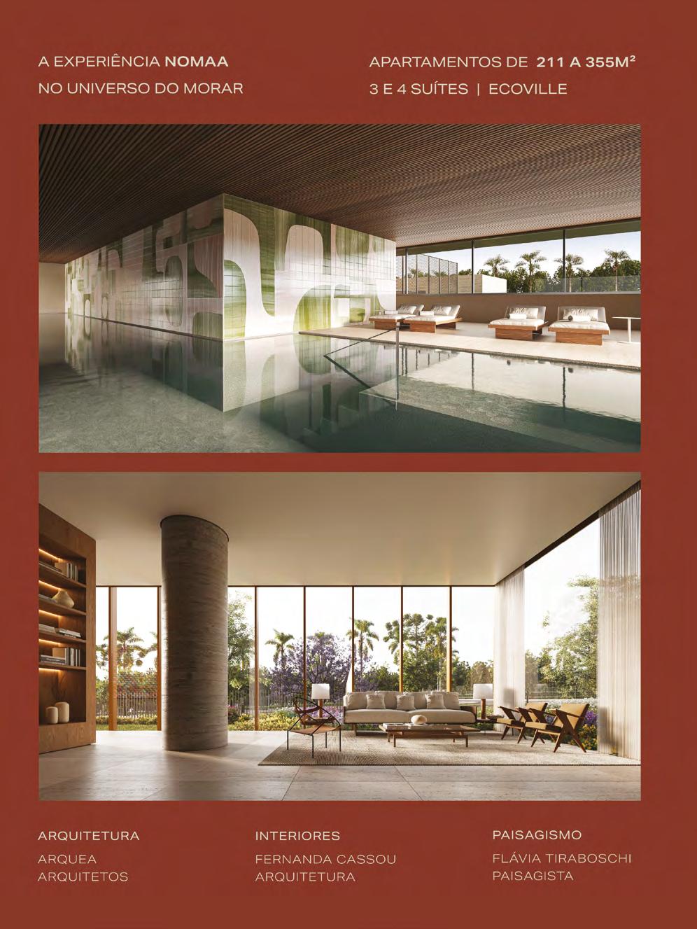 Nos ecos dos poemas de Cecília Meireles, a leveza que permeia os mistérios do mundo reflete o equilíbrio da vida. Capa desta edição, o designer Domingos Tótora apresenta sua arte como uma poética da singeleza natural, onde a cumplicidade entre terra e matéria se transforma em esculturas que tocam o coração. A essência artística brasileira, fonte de tantas vozes, encontra o fervor que lhe é merecido na nova edição da SP-Arte Rotas Brasileiras. Na Aberto 03, o legado de Tomie Ohtake e Chu Ming Silveira é celebrado por meio de um diálogo profundo entre arquitetura e reflexões artísticas. Em compasso com a natureza, a criatividade é a força que move o projeto da Usina de Arte, tornando-o um ato de transformação social e ambiental. Eis que a importância do ser é reinterpretada no setor imobiliário. A busca por novas formas de projetar habitações faz da intersecção entre expressão, arquitetura e design um novo paradigma para estimular o bem-estar. Convidamos você a desbravar estas páginas ao ar livre e encontrar inspiração na essência que nos permite ser e renascer.