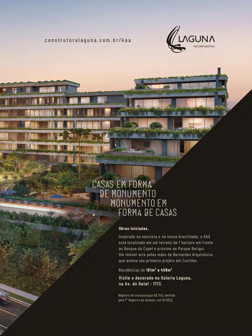 empreendimento no coração do Bigorrilho, o primeiro da América Latina a obter a certificação WELL. O prédio da Construtora Laguna integra diversos indicadores de saúde, incluindo qualidade do ar, água, iluminação, nutrição e bem-estar mental. Com 32 residências suspensas, preserva mais de 1 mil m² de vegetação nativa, incluindo um bosque com 13 araucárias e mais de 80 árvores, atraindo diversas espécies de aves.