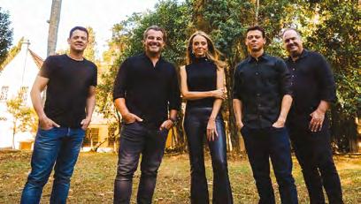 Leonardo Pissetti, diretor de Incorporações da Swell, Paulo Bacchi, CEO da Artefacto, Vanessa Pissetti, diretora administrativa da Swell, Thiago Pissetti, diretor de Engenharia da Swell, e Pedro Torres, responsável por marketing e vendas, anunciam "Jardins Artefacto by Swell", primeiro empreendimento no Paraná assinado por Juliana Meda, com mobiliário 100% Artefacto.