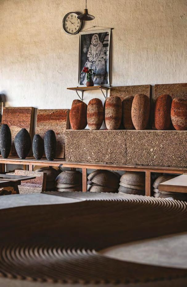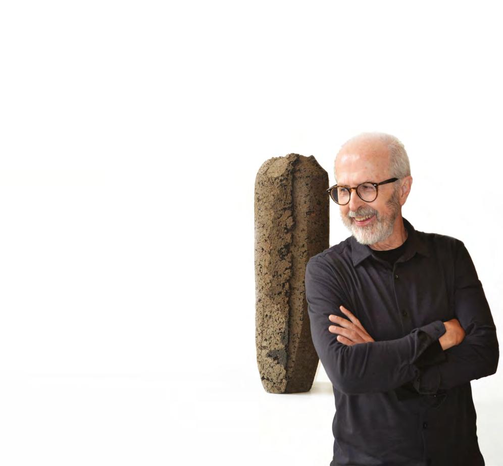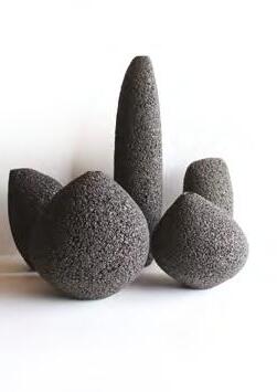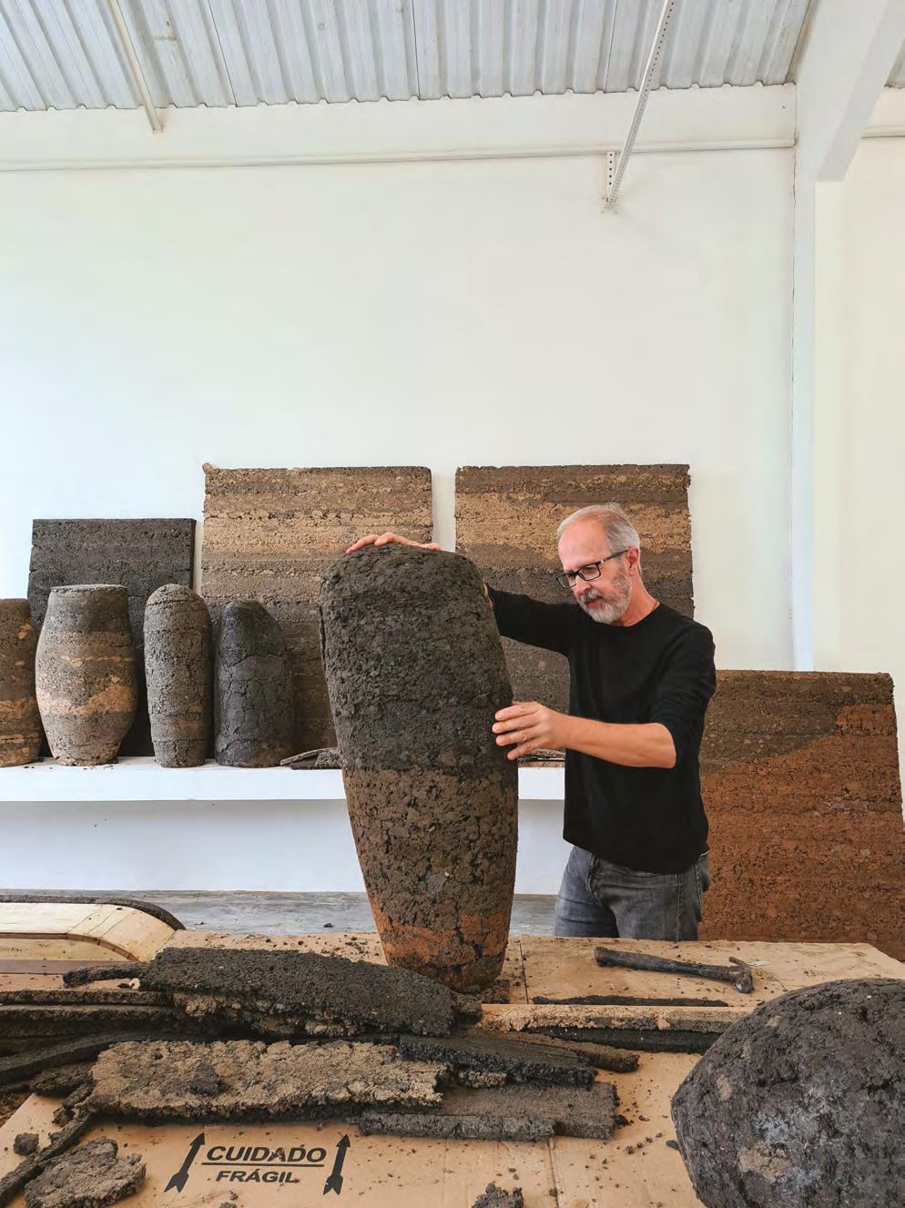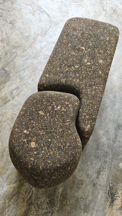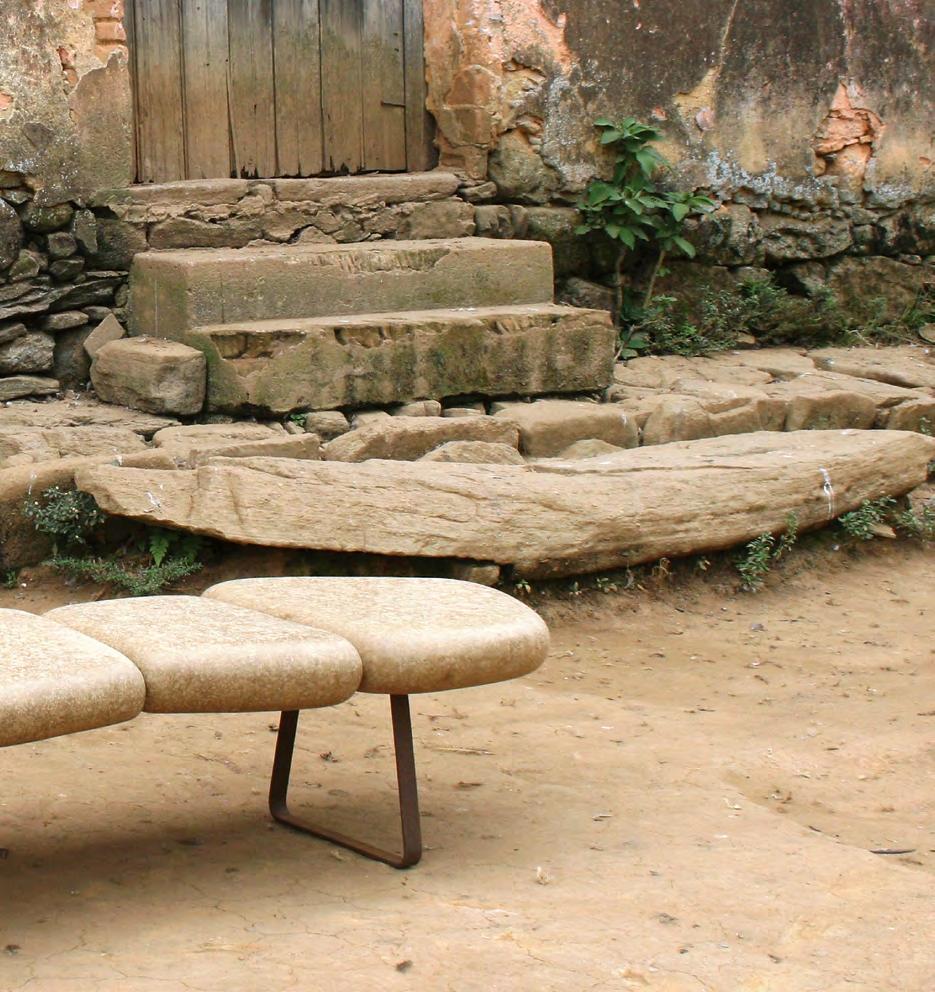 formas e texturas que concebe. Quem as vê e toca se surpreende ao sentir a suavidade aveludada e quente, a despeito da aridez das rochas que as inspira. Desta maneira, emociona. “Depois de tocar minhas peças, as pessoas falam dessa emoção, e isso é o que realmente importa para mim”. Embora cite referências como Isamu Noguchi, Joseph Beuys, Mira Schendel e José Resende, sua fonte primordial é a agudeza da essência. “Eu sou muito explorador da região. Conheço todas as pedras, montanhas, picos e chãos. Eles estão nas minhas entranhas por onde arde esse fogo criativo”.