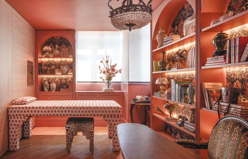 Alguns itens do décor, como uma luminária e obras, foram criados por ele exclusivamente para o ambiente em parceria com artistas e se misturam à nova linha de tecidos. “Assim que vi a Coleção Gardens, especialmente o tecido do Elefante, imaginei imediatamente as paredes e o teto cobertos com ele. O único pedido que fiz foi a criação de uma versão com fundo azul, já que só existia a vermelha. O elefante é um símbolo sagrado, especialmente na Tailândia, e essa mistura cultural tem tudo a ver com a inspiração oriental que permeia o espaço”.