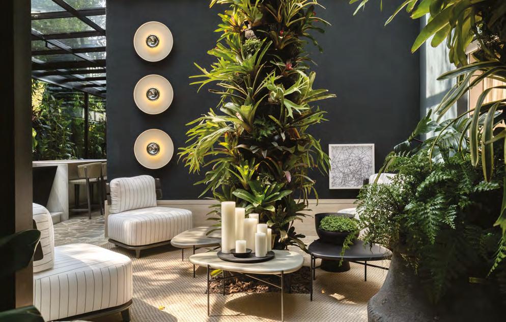 exterior, enquanto a arte intensifica essa conexão. Nas áreas comuns, destaque para espaços como o deck para meditação e o spa na piscina. Cada projeto é único, e este não é exceção”, diz o arquiteto.
