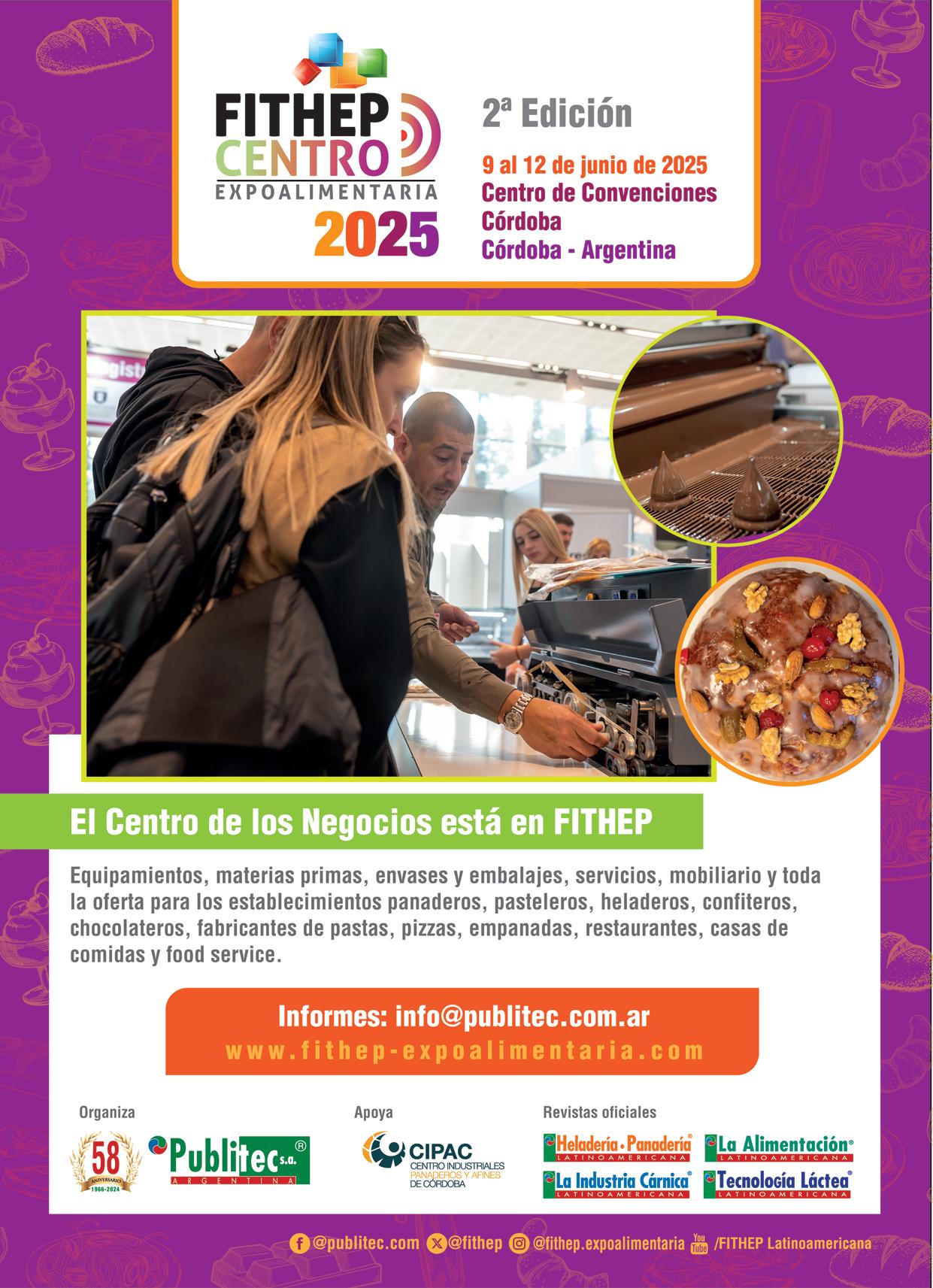 Del 9 al 12 de junio de 2025 tendrá lugar la segunda edición de la Feria Internacional de Tecnologías y Materias Primas para el Sector Dulce y la Gastronomía. FITHEP reúne al amplio espectro del empresariado dedicado a la producción de helados, panificados, pastelería, chocolatería, pizzería y empanadas, restaurantes y food service. La edición 2025 se prepara con importantes novedades, lo que le ha valido ser Declarada de Interés Provincial. Publitec, organizadora integral de la feria, ha ampliado la convocatoria de compradores y expositores. El CIPAC, Centro de Industriales Panaderos de Córdoba, renueva su presencia como entidad anfitriona.