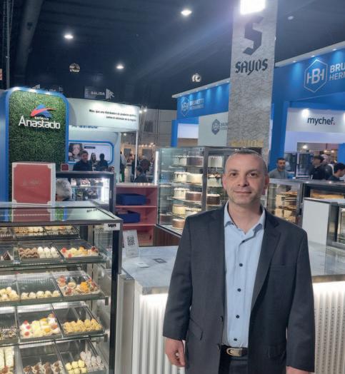En esta edición 2024 de FITHEP vinimos con un área especial dirigida a soluciones de lavado para heladería, panadería y pastelería, con equipos específicos para utensilios, moldería y cristalería. Como en otras oportunidades, también presentamos un sector de equipamiento para panadería y pastelería de la empresa española Salva, con equipos robustos pensados para grandes producciones. Como novedad en este terreno están los hornos convectores con sistema ProWash de Salva, que incluyen lavado automático de cabina. También presentamos en nuestro stand un área de abatimiento y cocción para pastelería con Illinox. Y estamos lanzando una línea de mostradores y armarios refrigerados marca Fredomar que hemos desarrollado en Frasconá para el mercado argentino y de los que estamos muy orgullosos. En el caso de los equipos para lavado, trabajamos con la marca Winterhalter para los utensilios, canastos, ollas, bowls, baldes, dando una solución a la producción en heladería, panadería y pastelería. Algo muy interesante es que tiene un prelavado en frío que evita que se peguen las harinas, luego viene el lavado caliente y los resultados son perfectos. Con los equipos Winterhalter se ahorra entre un 60 y un 85% de agua con respecto al lavado a mano, para dar una idea, con un lavavajilla bajo mostrador se lavan 24 vasos con 2,4 litros de agua. La idea de Frasconá es ofrecer equipos que disminu-