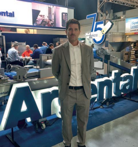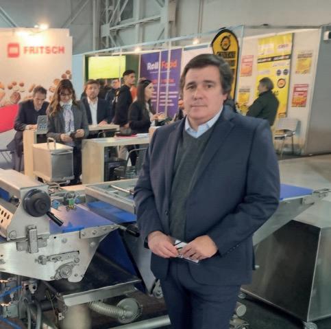 Nuestra casa matriz Multivac compra Fritsch en 2019 y a partir de ese momento comenzamos a comercializar esta marca en la Argentina. Esta es nuestra tercera participación en FITHEP, pero es la primera vez que estamos mostrando una línea industrial, en este caso dirigida a la producción de medialunas y facturas. Este modelo Multiflex M tiene una capacidad de producción de 6000 medialunas por hora, tiene la característica de que el enrollado es muy preciso y permite obtener todas las unidades de la misma dimensión. De la máquina pasan a una bandeja y al horno. En otra máquina que está en nuestro stand estamos mostrando el laminado previo. Vemos un gran interés y muchas preguntas, hay muchos clientes argentinos interesados por esta marca alemana. Multivac está en la Argentina desde 1971 y seguimos participando activamente en la industria cárnica y la