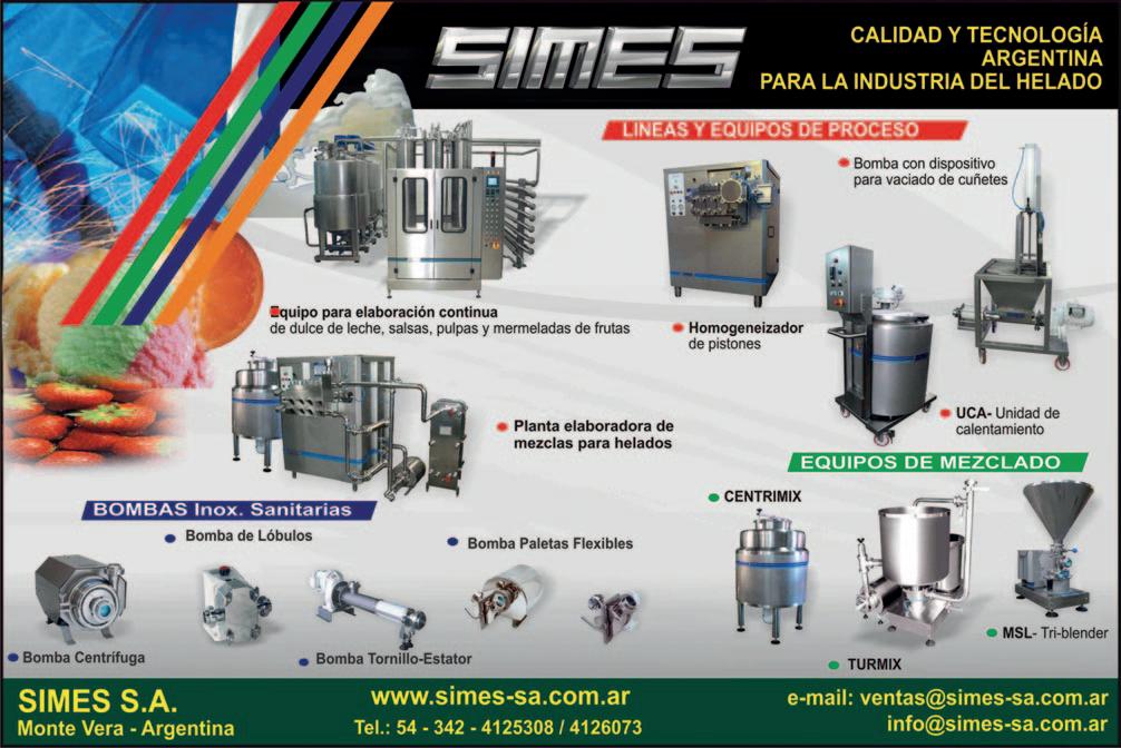Ruta Provincial N°2 altura 3800 (3014) MONTE VERA – Santa Fe Tel.: (54 342) 412-5308 / 412-6073 ventas@simes-sa.com.ar info@simes-sa.com.ar Calidad y tecnología argentina para la industria del helado.