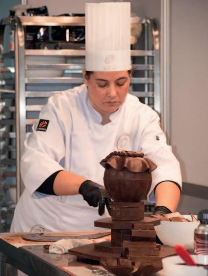 ofrecen en el restaurante tanto a huéspedes como a quienes circulan por La Perla. La pastelería se distingue por la reversión de postres clásicos elaborados con la maestría de Tifani Moli, nuestra pastelera estrella, egresada de la Escuela de Pastelería de Buenos Aires y que ya trabajó en el Hotel Konke de Buenos Aires, en Capital Federal. Tifani tiene 30 años y siempre se destacó por su calidad en las elaboraciones. Participó en los campeonatos FITHEP en 2019. Es entusiasta y sumamente dinámica. Cuando la entrevistamos afirmó “aquí puedo crear y renovar clásicos”.