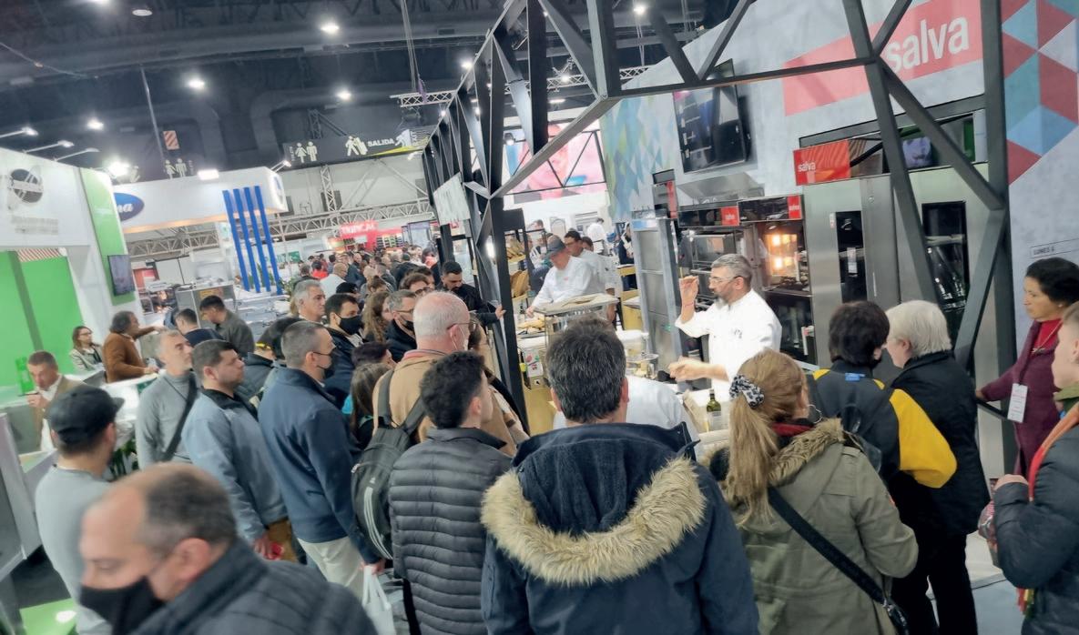 de toda la Argentina y países de la región se dieron cita en la reconocida feria de tecnologías y materias primas. Industriales panaderos, pasteleros, helade ros, chocolateros, pizzeros, empanaderos, alfajore ros, responsables de restaurantes y todo el segmento de la gastronomía fueron al encuentro de la innova ción, de las soluciones tecnológicas y de las nuevas tendencias que surgieron a partir de las exigencias derivadas de la pandemia. No faltaron las grandes figuras mediáticas de la gastronomía como Osvaldo Gross, Narda Lepes, Juan Manuel Herrera, Andrea González y tantos otros que interactuaron con el público profesional mientras desarrollaban elabora ciones con recetas novedosas y usando tecnologías de reciente lanzamiento.