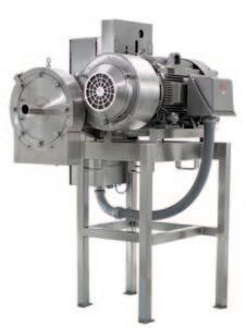 Hay que tener claro cuál es la mejor opción para un producto según las características de sus ingredien tes. En algunos casos se puede cortar el producto deshidratado a granel. En otros, el fabricante prefie re procesarlo en un lecho fluido, y otros prefieren cortarlo en su estado natural para después secarlo. Para la reducción de tamaño de partícula, el modelo Comitrol de la línea de molinos Urschel se ofrece como una solución para una amplia gama de pro ductos, tanto secos como semisecos o líquidos. La línea de Comitrol ofrece tolva, conexión para bom bas o tornillo de alimentación para adaptarse a la línea y la condición de la materia prima. La elección del cabezal de corte e impulsor, así como la veloci dad de éste, determinarán el tamaño de partícula final, pudiendo obtenerse desde un granulado uni forme a una pasta uniforme de partícula impalpable. Esta línea de equipos también ofrece distintas tolvas de descarga para una mejor integración a su línea.