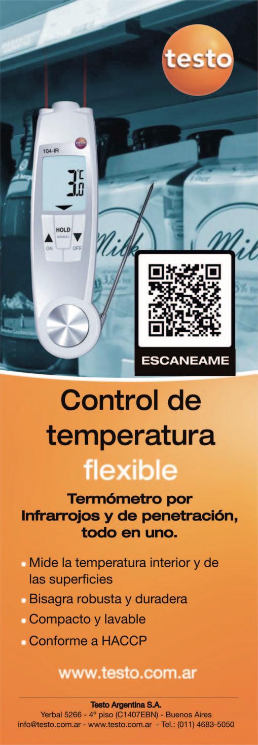Yerbal 5266 4º Piso (C1407EBN) CABA - Argentina Tel.: (54 11) 4683 -5050 Fax: (54 11) 4683-2020 info@testo.com.ar / www.testo.com.ar Instrumentos de medición para la verificación y monitoreo de calidad de los alimentos.
