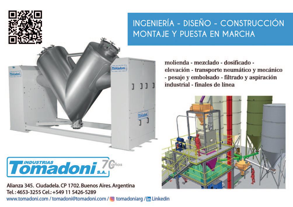 INDUSTRIAS TOMADONI S.A. Alianza 345 CP 1702 Ciudadela - Buenos AiresArgentina Tel.: (54 11) 4653-3255 Cel.: (+54 911) 5426-5289 tomadoni@tomadoni.com www.tomadoni.com Industrias Tomadoni S.A participa en servicios de asesoramiento, ingeniería, nuevos proyectos, proyectos de expansión, moderni zación y sustitución de equipos de procesos, aumento de capacidad y plantas automatizadas llave en mano.