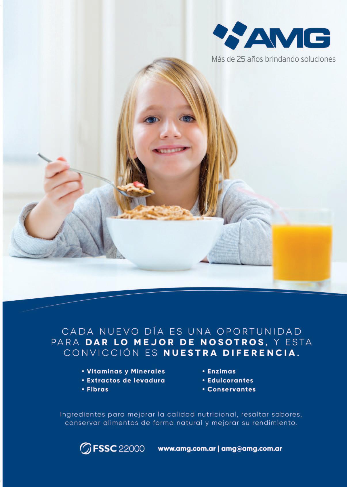 Maipú 1300 - Piso 4 (C1006ACT) Buenos Aires - Argentina Tel.: (54 11) 4314-4100 amg@amg.com.ar / www.amg.com.ar Elaboramos aditivos para la industria alimentaria. Prémix para fortificación de alimentos, enzimas, levaduras, conservantes biológicos y fibras entre otros. Calidad, conocimiento e innovación.