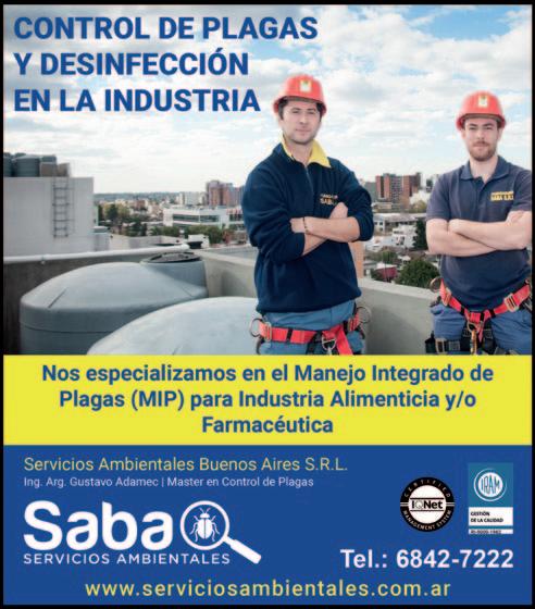 MORÓN – BS. AS.- ARG. Tel.: (54 11) 6842-7222 info@serviciosambientales.com.ar www.serviciosambientales.com.ar Control de plagas, MIP (Manejo Integrado de Plagas), desinsecta ción, desinfección, desratización, ahuyentamiento de aves y murcié lagos. Limpieza de tanques de agua potable. Reporte de visita, Diagrama de planta c/cebaderas, Tratamiento de silos, Trampas de Luz, informes de endencias, Normas HACCP-BPM, auditorías. El Sistemas de gestión de la calidad de SABA ha sido certi ficado según las normas ISO 9001:2008.
