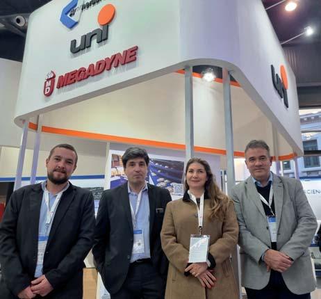 Mariano Semeniuk, jefe de la unidad de negocios bandas sintéticas; Juan Carlos Santiago, Director; Dorelena Brealey, Jefa de marketing Latam Ammega Group, y Humberto Nuñez, Jefe de la unidad de negocios malla modular