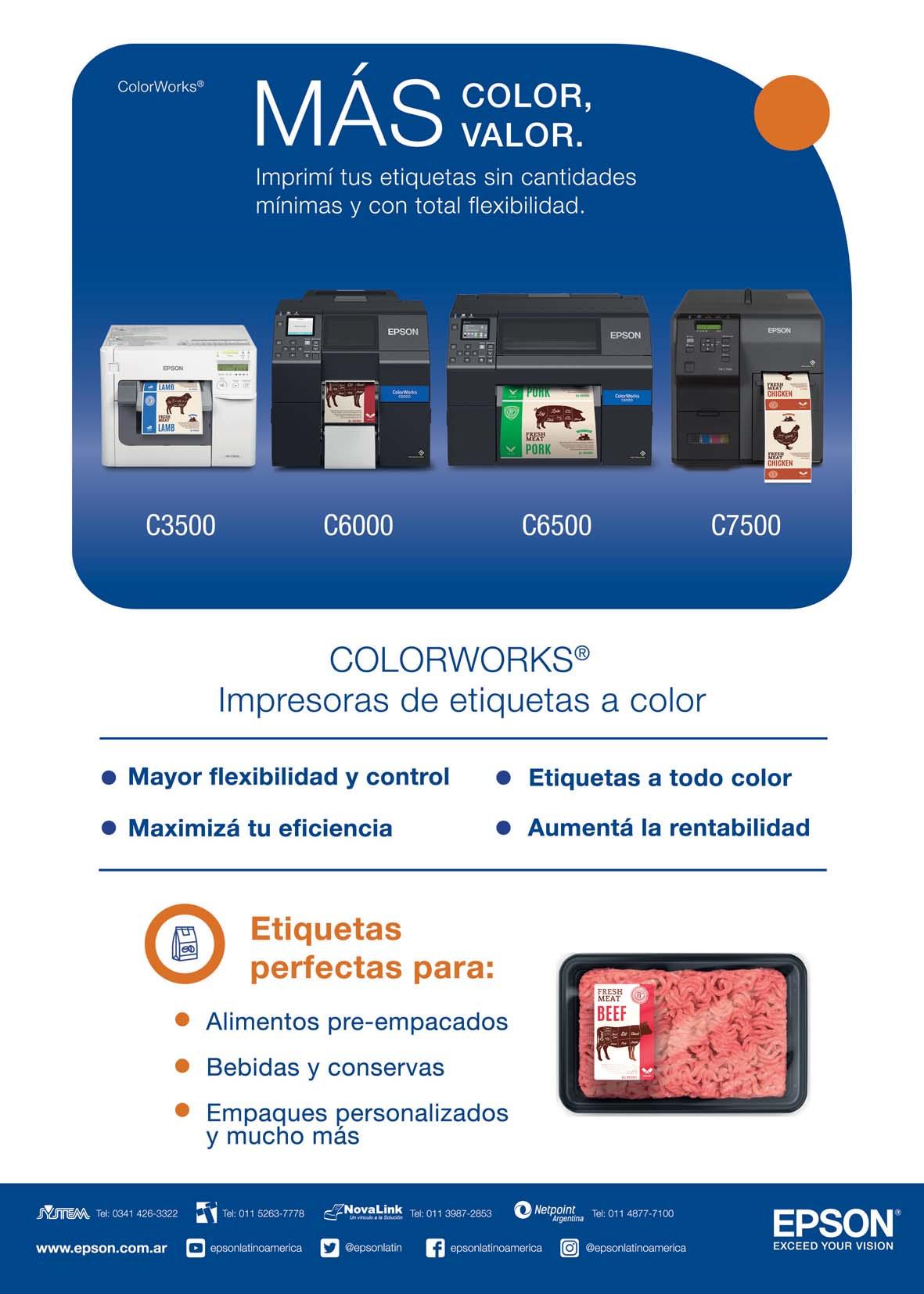 Epson, marca líder en impresión e imagen digital, ofrece a la industria de producción y manufactura de alimentos su familia de impresoras Epson ColorWorks, especialmente desarrolladas para la impresión de múltiples formatos de etiquetas sin desatender el ahorro de costos y la facilidad de mantenimiento.