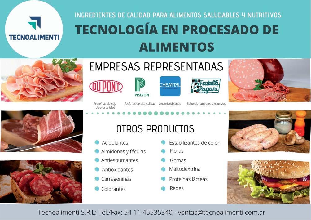 Avalos 748 (1427) Bs. As. - Argentina Tel./Fax: (54 11) 4551-8226 info@tecnoalimenti.com.ar www.tecnoalimenti.com.ar Ingredientes para la ind. alimentaria. Proteínas de alto valor nutricional. Proteínas funcionales para la ind. cárnica. fatos. Carrageninas. Fermentos. Estabilizantes. Aditivos. Asesoramiento técnico.