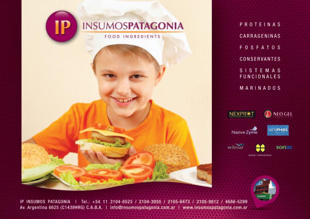 IP INSUMOS PATAGONIA SRL Av. Argentina 6625 (C1439HRG) CABA – Arg. Tel.: (54 11) 2104-8523 / 3055 (54 11) 2105-6473 / 9812 (54 11) 4686-5299 info@insumospatagonia.com.ar www.insumospatagonia.com.ar Proteínas, Carrageninas, Fosfatos, Conservantes y Sistemas Funcionales para la Industria Alimentaria.
