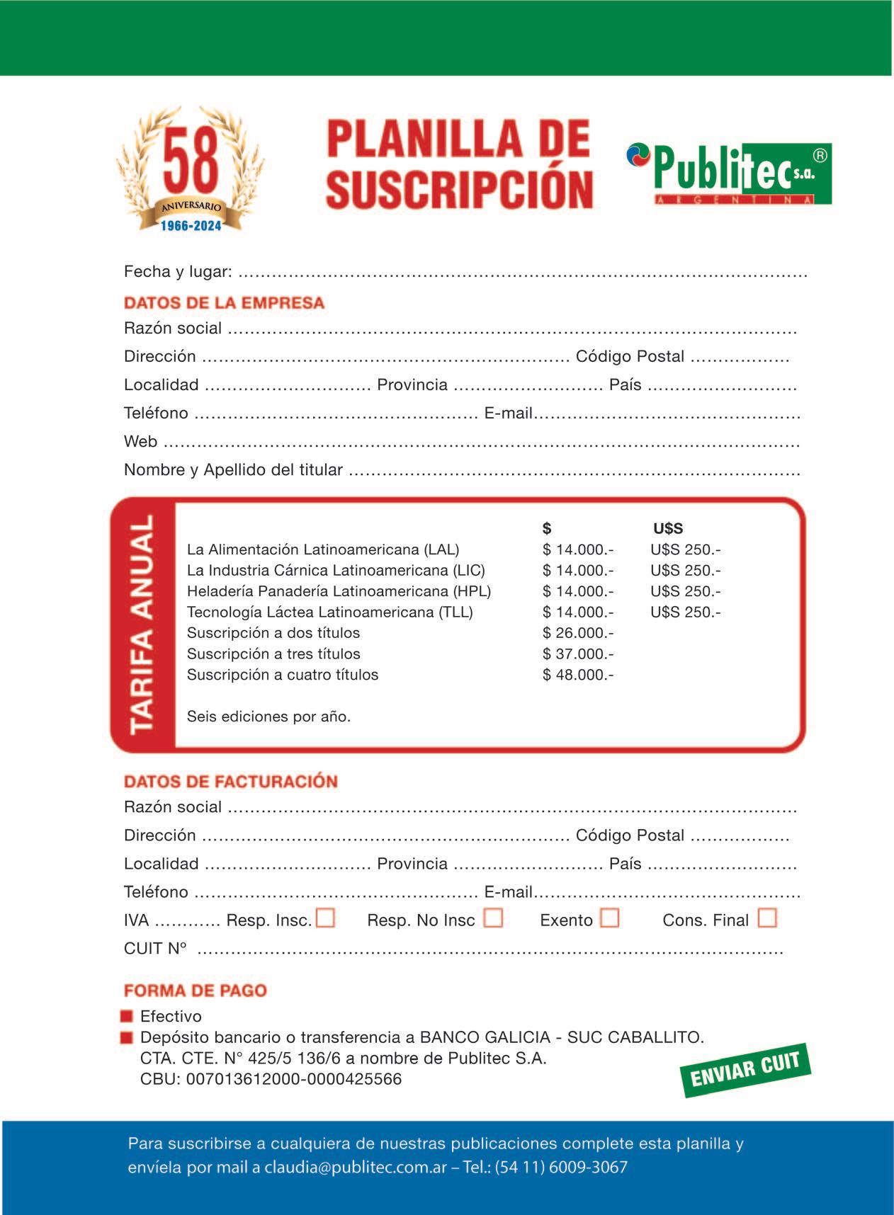DIRECCIÓN, REDACCIÓN Y ADM. Av. Honorio Pueyrredón 550 - Piso 1 (1405) CABA - ARGENTINA Tel.: 54-11-6009-3067 info@publitec.com.ar http://www.publitec.com.ar