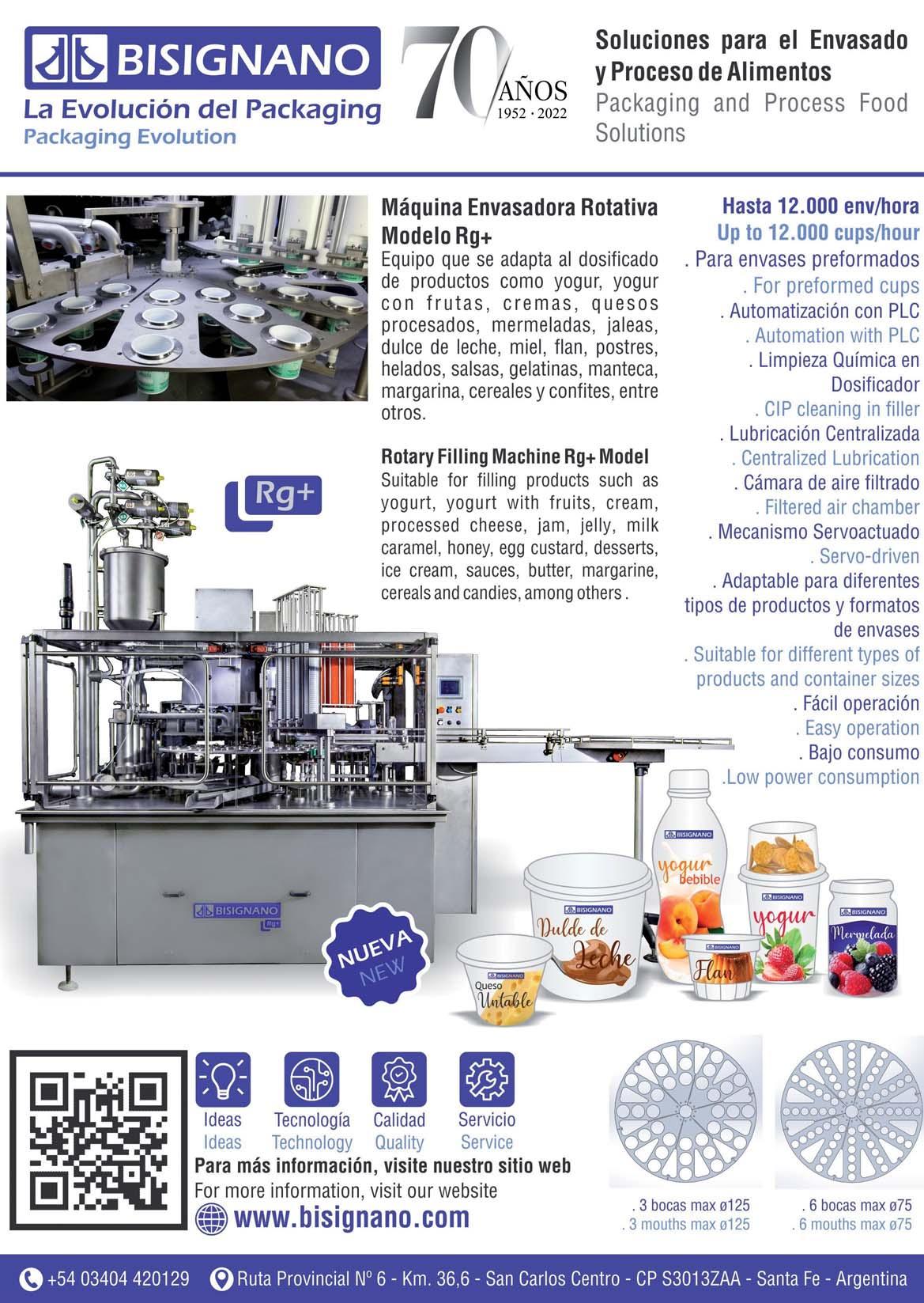 Ruta Provincial 6 km 36.6 (S3013) San Carlos Centro – Santa Fe – Arg. Tel.: (+54 3404) 420129/420982 bisig@bisignano.com.ar www.bisignano.com.ar Máquinas envasadoras para la industria de alimentos. Termoformadoras. Plantas llave en mano. Equipos de proceso.