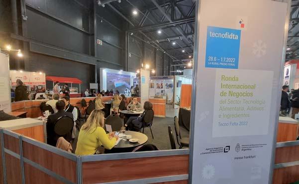 en la feria la 6ª Ronda Internacional de Negocios del Sector Tecnología Alimentaria, Aditivos e Ingredientes, donde la generación de nuevos contactos y negocios ocupó un espacio destacado. En un cómodo ambiente, compradores internacionales se reunieron con empresas expositoras nacionales que buscaban nuevos mercados para sus desarrollos y productos. Se agendaron 72 reuniones con empresas provenientes de Colombia, Ecuador y Uruguay.