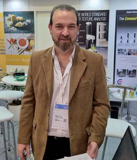 inalterable en el tiempo. En la feria estamos presentando un conservante desarrollado para bebidas plant based a partir de goma gelam, un ingrediente que importamos desde hace muchos años. El texturómetro de Stable Micro Systems es un equipo que traemos a esta feria desde el año 1994. Cada vez más empresas lo tienen en su departamento de desarrollo y de control de calidad. Es una herramienta que permite validar los productos finales y controlar las materias primas, es muy versátil y cambiando algunos accesorios se pueden determinar muchas características. Tiene múltiples aplicaciones, en el caso de la industria láctea el fuerte es en cremas, quesos untables, postres lácteos, dulce del leche (sobre todo alfajorero), flanes, etc.