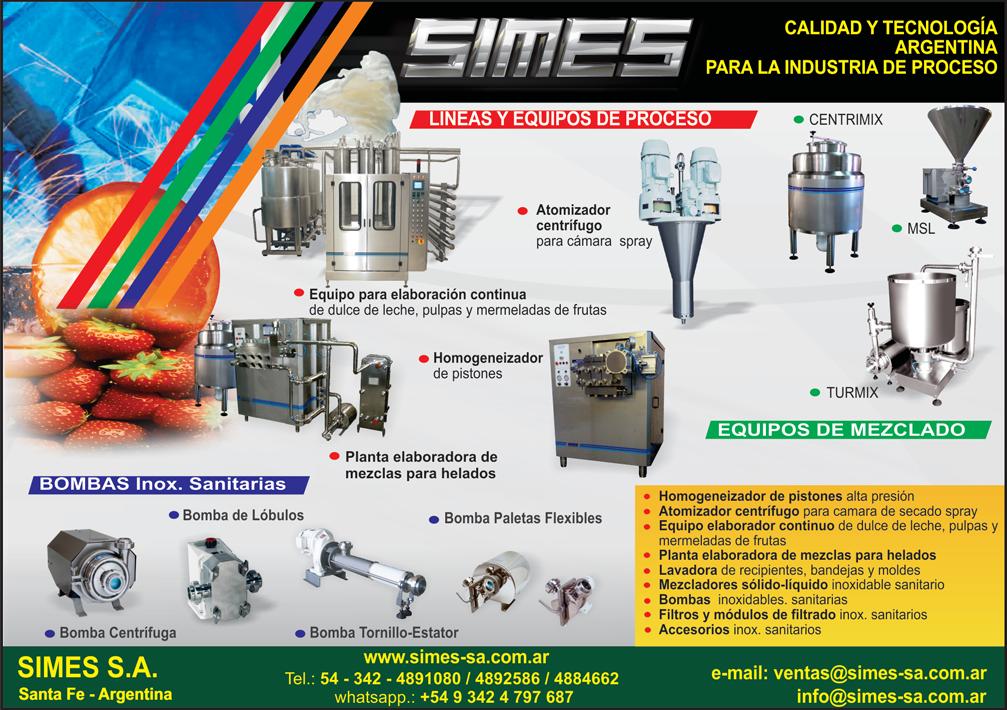 Tel.: (54 342) 489-1080/ 400-0156 Fax: (54 342) 484-1008 ventas@simes-sa.com.arwww.simes-sa.com.ar Máquinas para la ind alimentaria, farmacéutica, cosmética y química. Homogeneizadores de pistones alta presión. Mezcladores sólidoslíquidos.