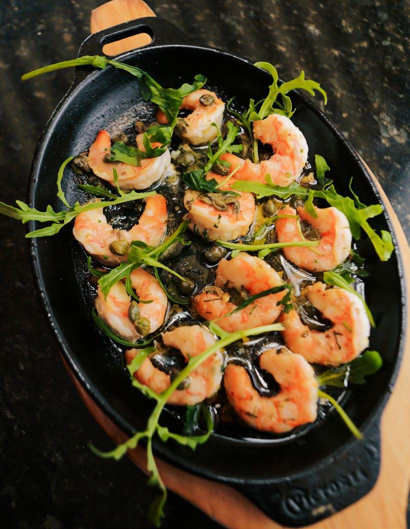Un bistró es un lugar para el día a día, para volver. Pero en Parisien la rutina se viste de sutileza: los platos clásicos —boeuf bourguignon, entrecôte con salsa café de París, pato a la naranja— llegan con un guiño limeño, mientras los fettuccine con ragú de osobuco o el coq au vin francés recuerdan que la tradición también puede reinventarse. Entre las entradas, tres preparaciones marcan la pauta del placer compartido entre cocina y barra: los champiñones rellenos con crema de espinaca y nueces, gratinados con parmesano; el tartar de trucha, fresco y vibrante con palta, alcaparras, ají limo y emulsión de perejil; y los langostinos à la meunière, bañados en mantequilla, ajo y cítricos, acompañados de una fougasse tibia.
