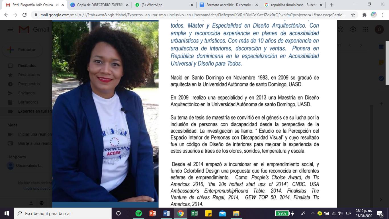 -Con experiencia en comunicación incluyente para el turismo, en publicaciones como el manual de turismo para todos.