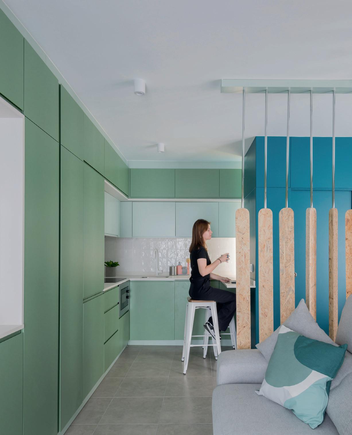 Por otro lado, la madera, aporta calidez y confort. “Jugamos con los distintos acabados que nos ofrece: lacada en colores, barnizada, al natural. Combinando madera y cerámica hemos hecho proyectos de reformas integrales muy divertidos, como Casa TUM por ejemplo, un pequeño apartamento en Madrid, donde hemos llevado la imaginación un paso más allá, explorando las ventajas que nos ofrecen estos materiales”.