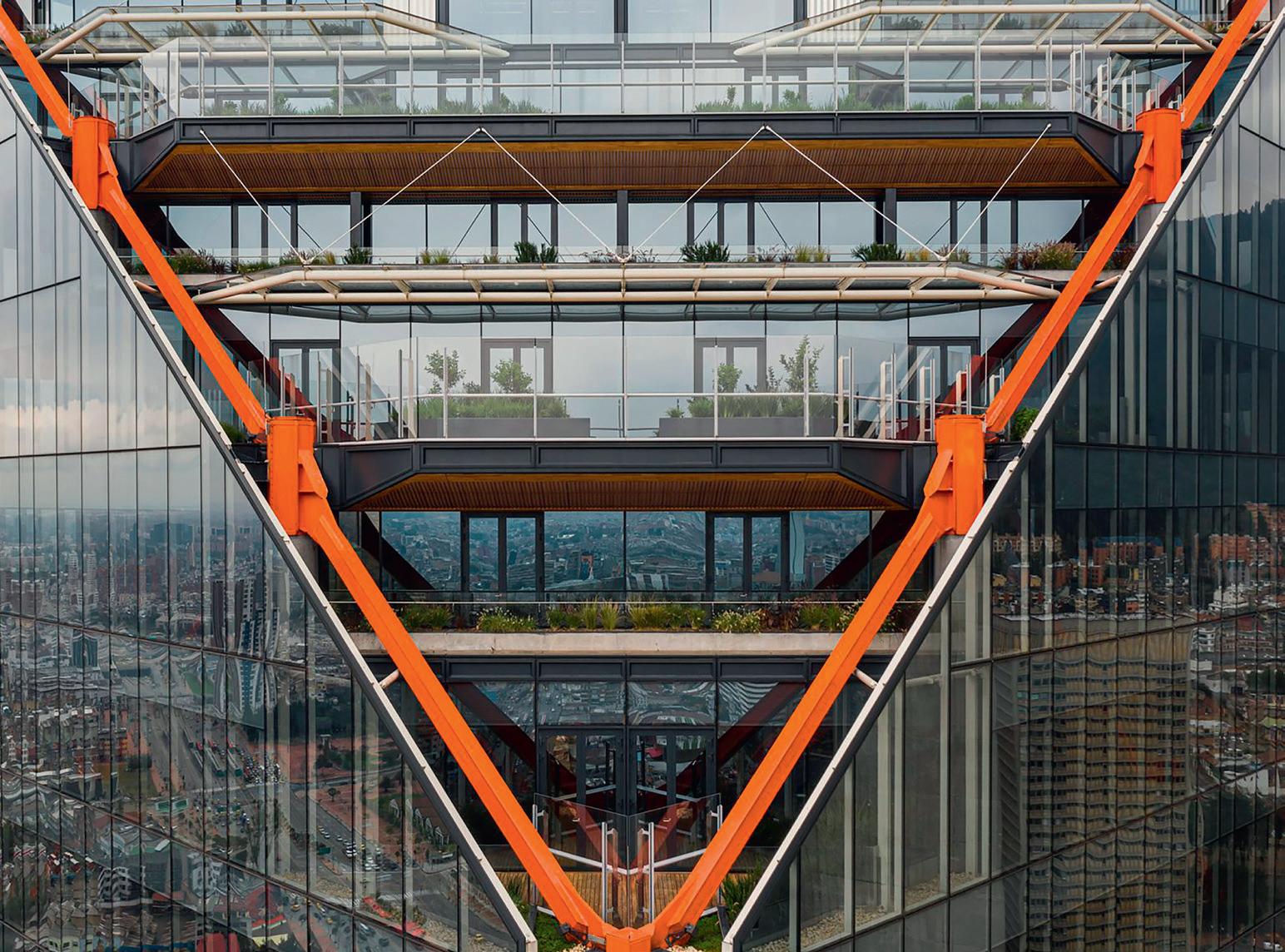 El proyecto Centro Felicidad Chapinero en Bogotá, diseñado por el Arq. Alejandro Rogelis, es un edifico de 10 pisos que ofrece espacios culturales, deportivos y recreativos gratuitos para la comunidad. Finalmente, el edificio Atrio en Bogotá, diseñado por el arquitecto británico Richard Rogers, que fue reconocido con el Premio Pritzker, es uno de los rascacielos más sostenibles de la región con sistemas avanzados de eficiencia energética.