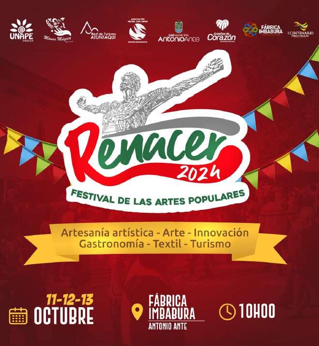La parroquia Andrade Marín, en el cantón Antonio Ante, será el epicentro de una celebración cultural sin precedentes con el Mega Festival de las Artes Populares RENACER - Anteños de Corazón. Este festival, que se llevará a cabo los días 11, 12 y 13 de octubre de 2024, busca reunir lo mejor del arte, la música, la gastronomía, y las tradiciones locales, nacionales e internacionales. El evento contará con una variada programación, que incluye: