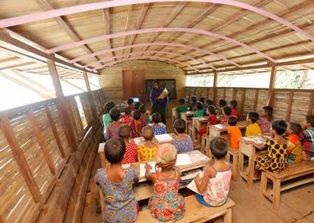 cursa estudios de nivel medio. “Esta posibilidad no sólo permitió a los niños estudiar, sino que no separó a las familias: los pequeños se quedan en sus hogares. Ya no viajan para alcanzar la escuela. Ella va por ellos”. Las embarcaciones están especialmente diseñadas para ajustarse a cualquier configuración de equipo energético, así como para proteger a los recursos electrónicos de las inclemencias del tiempo, incluso durante la altura del monzón. Han construido botes utilizando conocimiento, mano de obra y materiales locales. Pero supieron articular conocimientos: las barcazas incorporaron vigas de metal para permitir espacios abiertos sin columnas, con aulas más integradoras. Los pisos son de madera flexible. Los techos más altos e impermeables, con capas sucesivas que los hacen fuertes y resistentes a las torrenciales lluvias monzónicas.