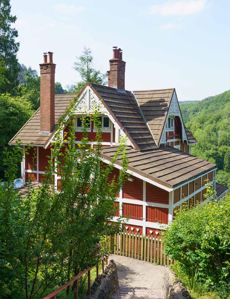 El imán que despiertan las escenografías en las que las aventuras de los personajes cobran vida se han revalorizado. La recién estrenada última temporada de Sex Education atraviesa una sucesión de espacios, pero la idílica casa de Otis y Jean situada en lo alto del río Wye se ha convertido en un emblema de la serie. Llamada El Chalet, es posible alquilarla para pasar unas vacaciones largas o un fin de semana. Cobijada bajo el exterior rojo, con franjas blancas y su inconfundible frente de tres chimeneas, se esconde en el Bosque de Dean, con un frondoso follaje que la oculta de la vista de los curiosos. El Chalet en Symonds Yat es un B&B con cinco dormitorios, con capacidad para 10 personas, decoración acogedora (que puede husmearse en las escenas de la serie), y también la terraza que frecuentan Jean y Otis a lo largo de los capítulos.