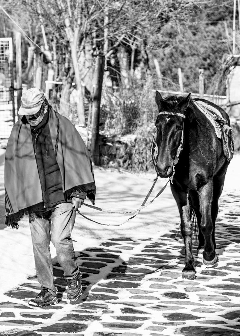 Gaucho puntano, salió con nieve bien temprano, y volvió de tarde a contramano. La Carolina, San Luis.
