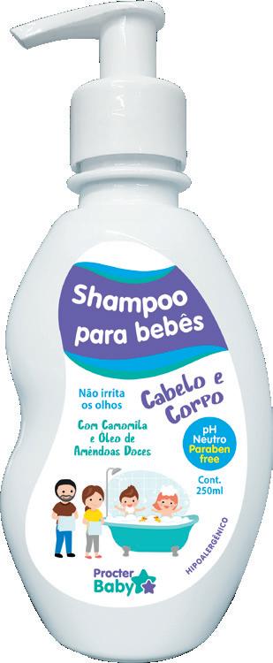 Com camomila e óleo de amêndoas doces. Não irrita os olhos. pH neutro.