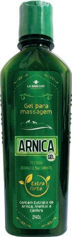 Linha Arnica Gel Gel para massagem. Dermatologicamente testado. Contém cânfora, mentol e extrato de arnica.